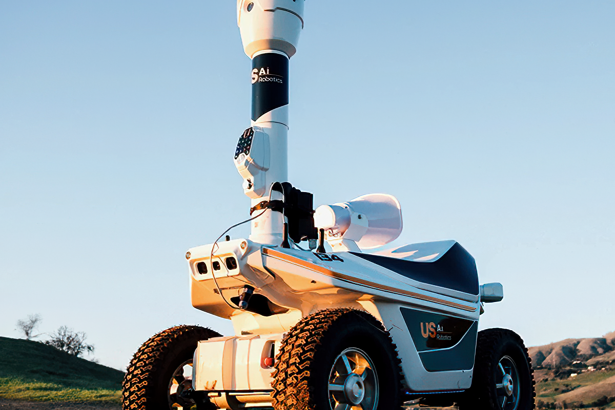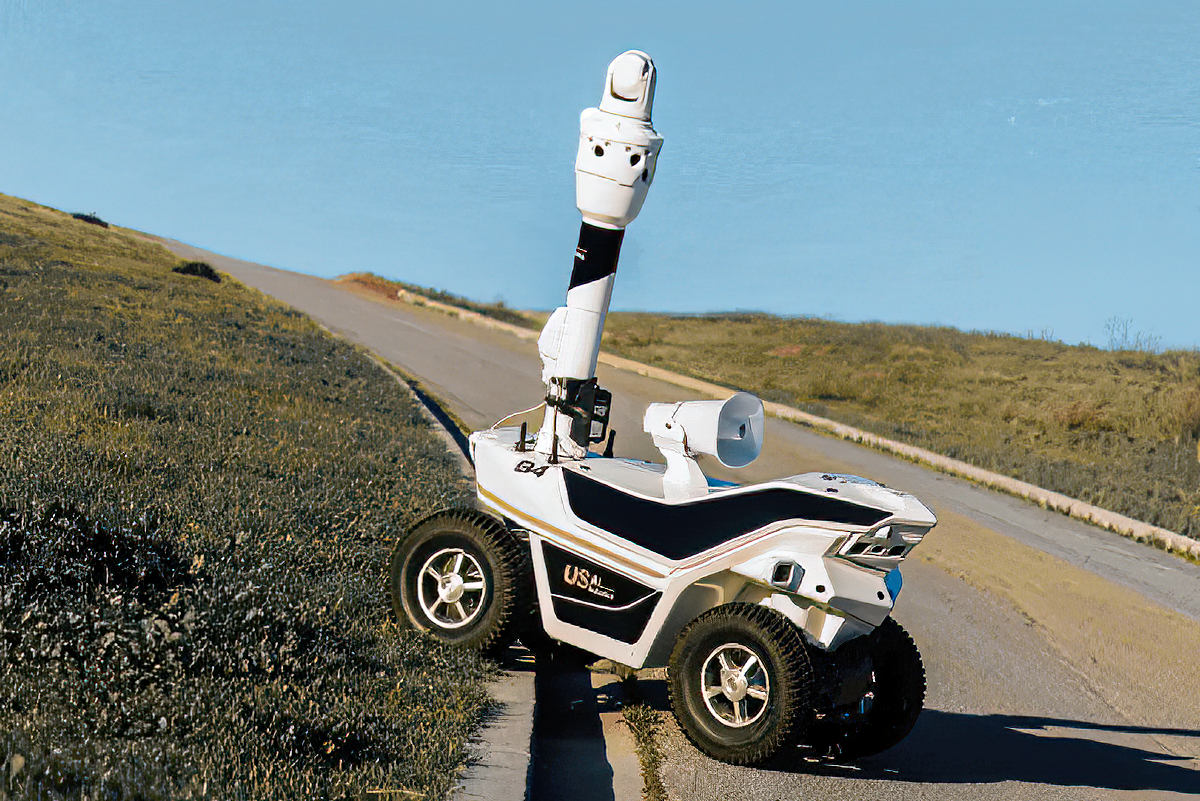 The ARGUS Autonomous Exterior Security Robot from USAi Robotics is capable of patrolling outdoor areas around the clock, in bright sunshine or rain. With autonomous movement coordinated by satellite and an internal visual motion control system, ARGUS conducts video surveillance at distances of up to 100 meters, automatically detecting people at up to 50 meters away. For larger sites, groups of ARGUS robots may be deployed together, operating in automatic patrol mode, to deliver 24/7 total area surveillance.