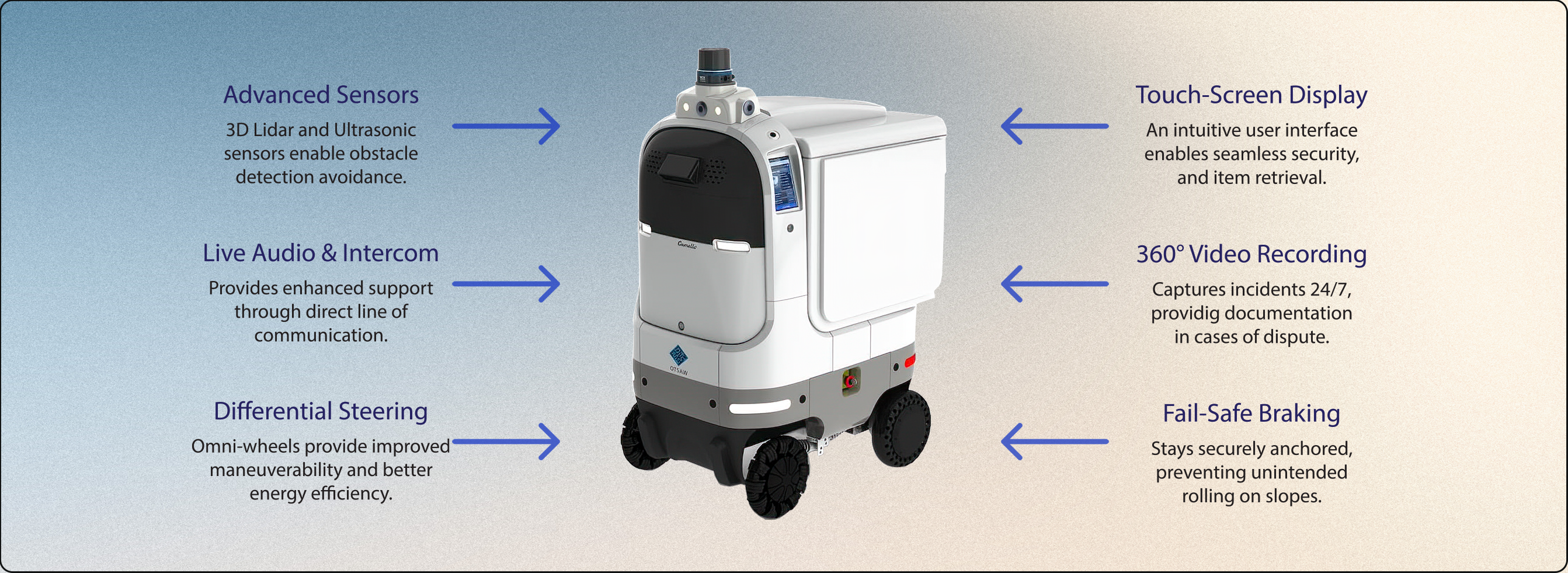 Manufactured by OTSAW, Camello+ is a new multi-purpose security robot. In urban environments, Camello+ can assist in monitoring streets, alleys, and public spaces. Camello+ can also assist in crowd control and enhancing safety for public events. For offices, corporate centers, and entertainment venues, Camello+ patrols both outdoor and indoor areas, monitoring access points and providing real-time alerts for unauthorized activity.